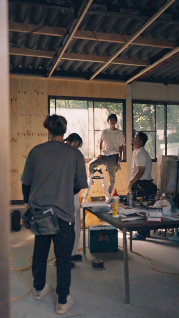 いよいよ作業開始です!今回は天井に張る木材を正確にカットするところから始めます。少しでもずれがあると、後々大きな影響が出てしまうので、ここは特に集中して慎重に作業を進めました。