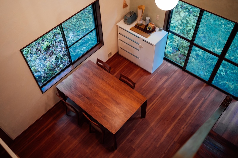毎朝、大きな窓から差し込む光で目を覚まし、森の景色を眺めながらコーヒーを飲む。2階のロフトから「おはよう!」と家族の声が降ってくる。夜は吹き抜けに響く笑い声に包まれながら、一日を振り返る。