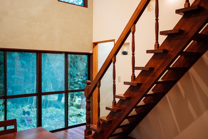 特に印象的だったのが、1階から2階へと続く美しい木製階段。年月を経て深みを増した木の質感、一つひとつ手作業で仕上げられた手すりや親柱。これらは、この家が歩んできた時間の証です。