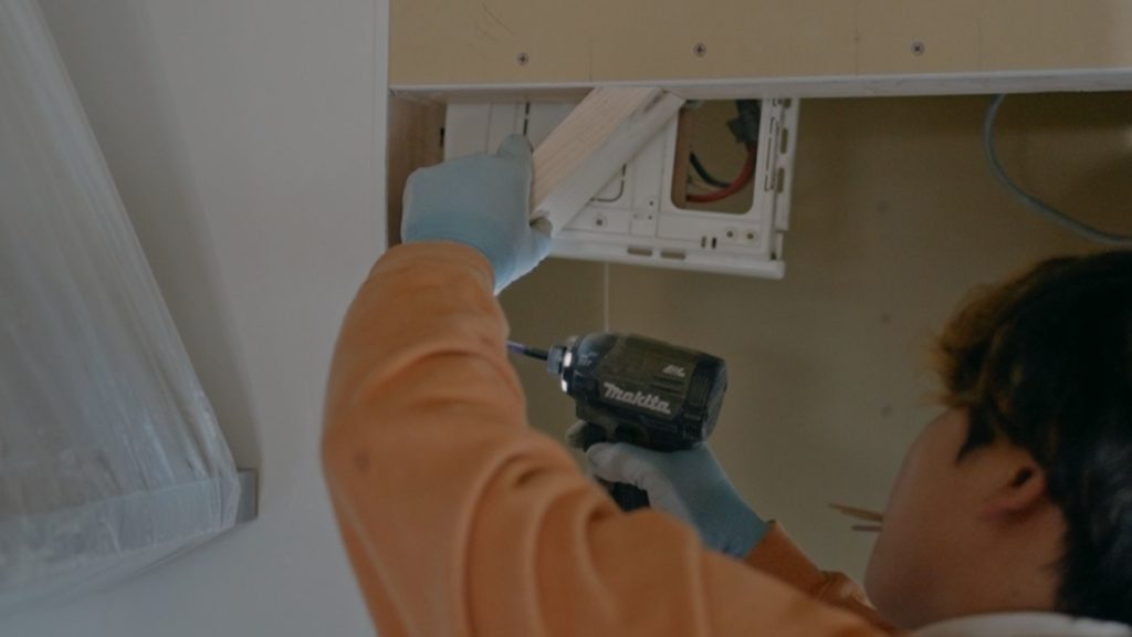 一枚一枚丁寧に木材をカットし、曲線に沿って下地を組んでいく作業は、まさに職人の技術が問われる工程。ミリ単位での調整を重ねながら、美しいアーチラインを作り上げていきます。