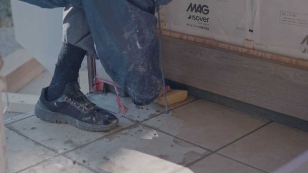 今日は現在進行中のリノベーション現場から、キッチンの造作工事と玄関タイルの施工についてご紹介します。