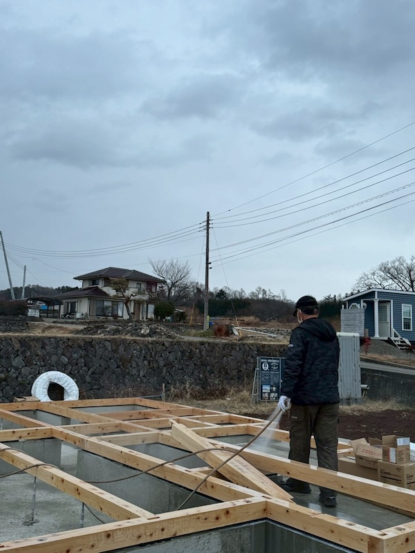 木材の大敵であるシロアリや腐朽菌から、大切な家を守るための”見えない鎧”を纏わせる作業です。