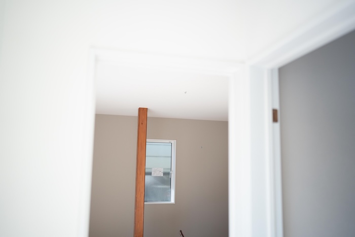 現場では、職人が一つひとつ丁寧に仕上げ作業を進めています。クロスの貼り分け、建具の調整、細部の仕上げ。すべての工程に妥協のない姿勢で取り組むことで、完成度の高い空間が生まれます。