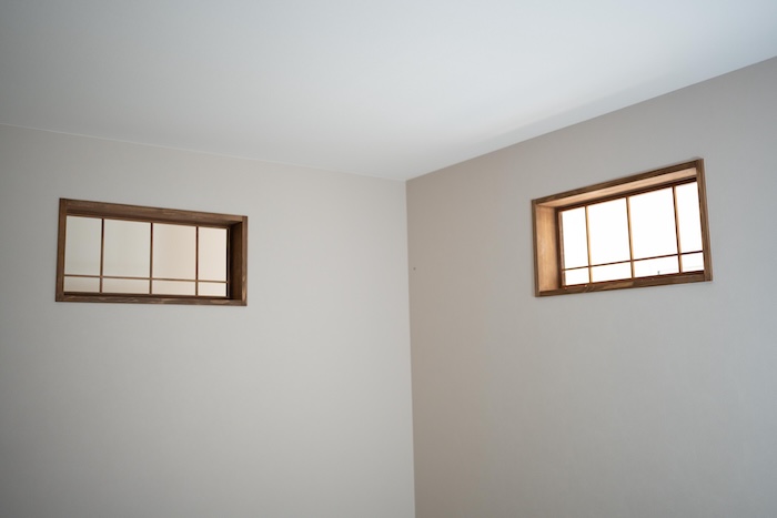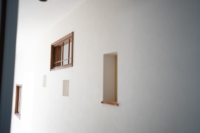 白を基調としたクリーンな壁紙に、木製の窓枠や建具が温かみをプラス。