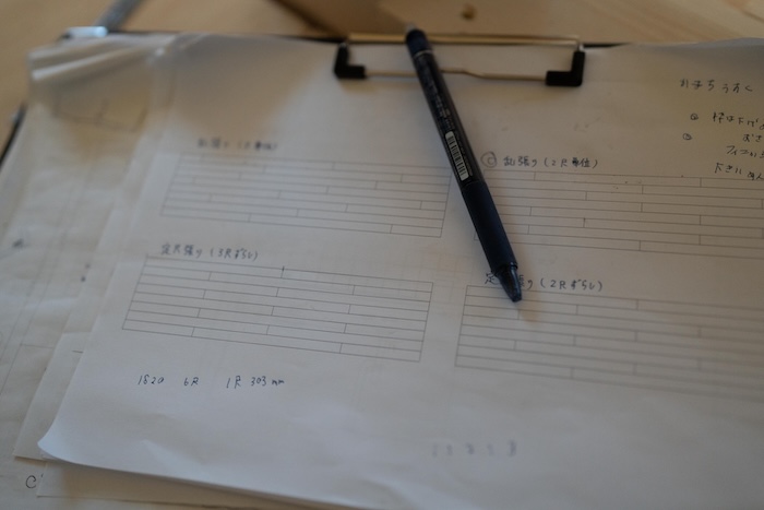 施工現場では、複数の色合いのフローリングを使い分けています。