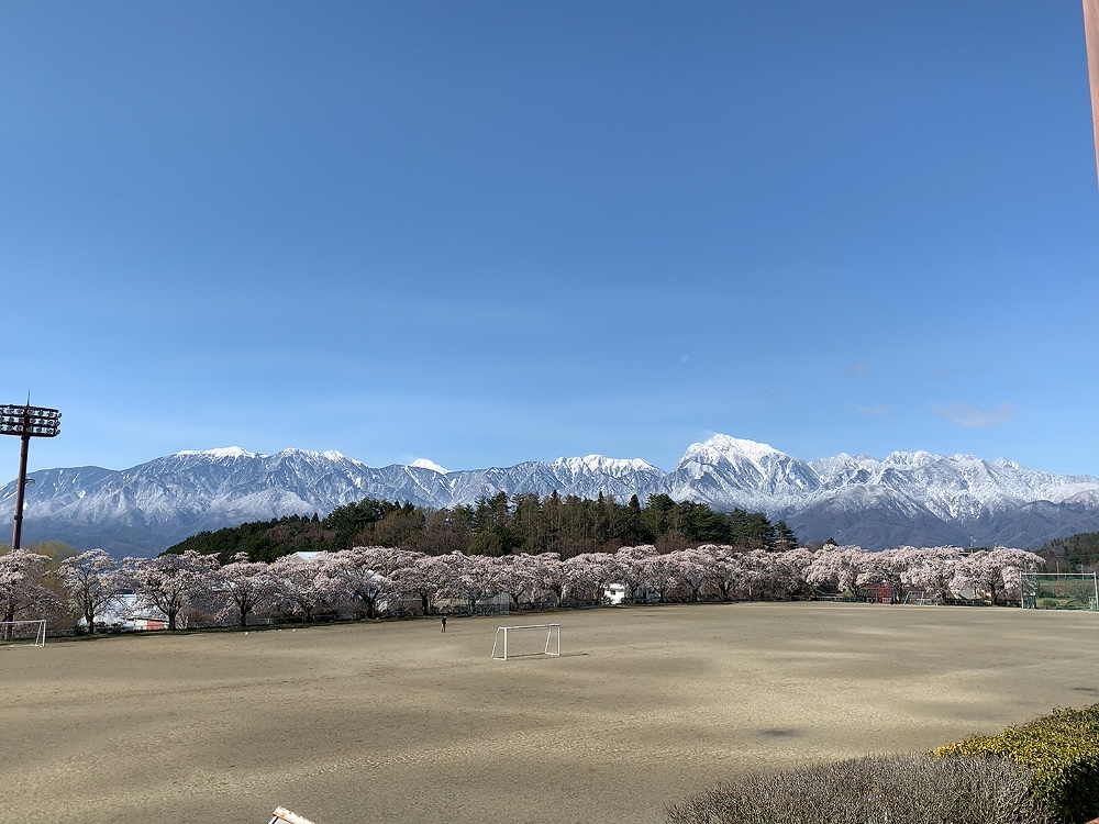 まだ寒い4月。暖かい日が続いて桜が咲いたと思ったら急にぐんと寒い日が来て雪が降り、桜と雪山