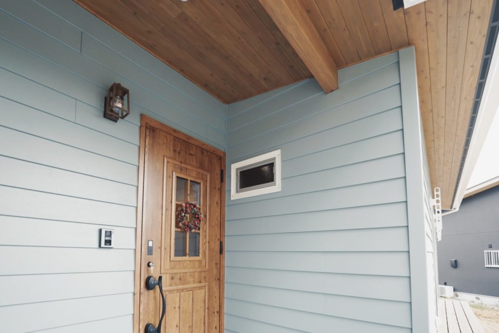 青みがかかったくすんだ緑の外壁