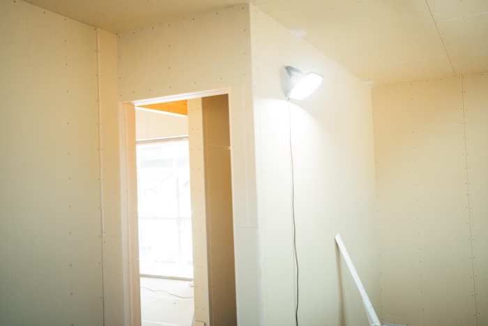「子育てしやすい家にしたい」「家族が自然と集まるリビングが欲しい」——30代のご家族から、このようなご要望をたくさんいただきます。今回は、現在施工中の木造注文住宅の様子をご紹介します。室内のボード貼りが完了し、施主様との現場打ち合わせを行いました。
