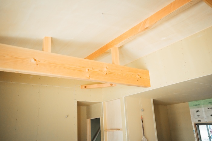 構造材を活かした化粧梁は、視覚的な開放感と木造住宅の力強さを演出。家族が長く暮らす家だからこそ、飽きのこないシンプルで美しいデザインを大切にしています。